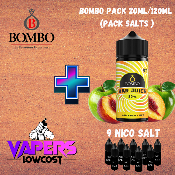 Bombo Bar juice (Pack Salts) 20ml (Longfill) 120ml 10/15mg Apple Peach Max